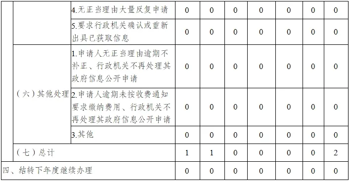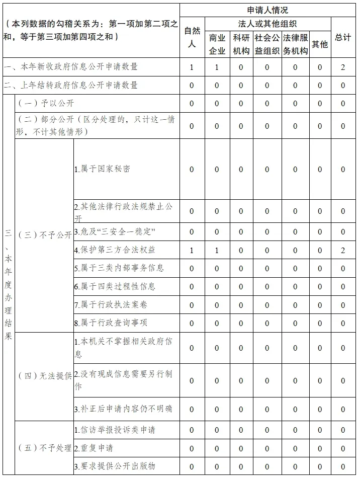 二是扎实做好依申请公开信息办理。2024年依法规范办理政府信息公开申请2件,其中网络申请0件、书面申请2件,已全部在规定时限内办结。根据国务院办公厅关于政府信息公开信息处理费管理有关规定,2024年无达到收费标准的申请事项,未向申请人收取信息处理费用;信息公开工作行政复议案件2件、行政诉讼案件0件。
