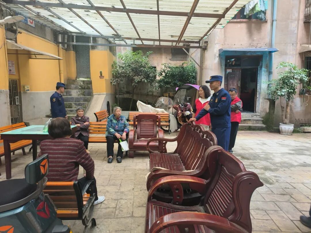 “走出去”,全方位普及消防知识。在“请进来”的同时,会址消防救援站“蓝焰黔行之红旗巡逻志愿分队”联合老城街道办及辖区派出所联合开展防消联勤巡逻工作。主要是针对各社区“三合一”“九小场所”及疏散通道进行排查提醒,确保老城辖区社会面的安全稳定。同时,也进一步加强了全体指战员对辖区地形、水源的熟悉掌握情况。