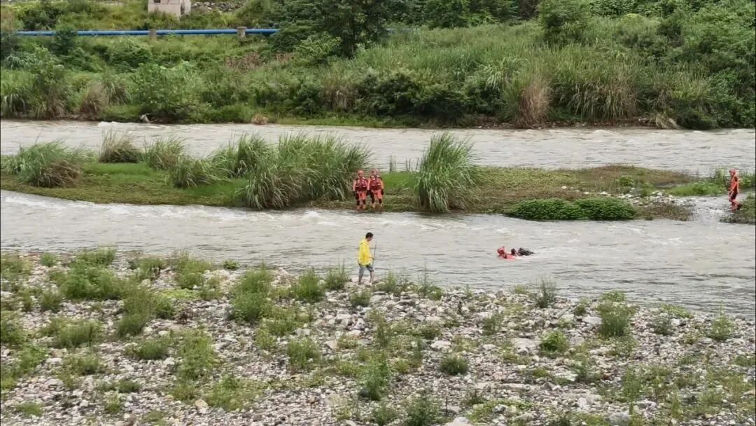河水暴涨!男子钓鱼被困河中央,消防横渡救人